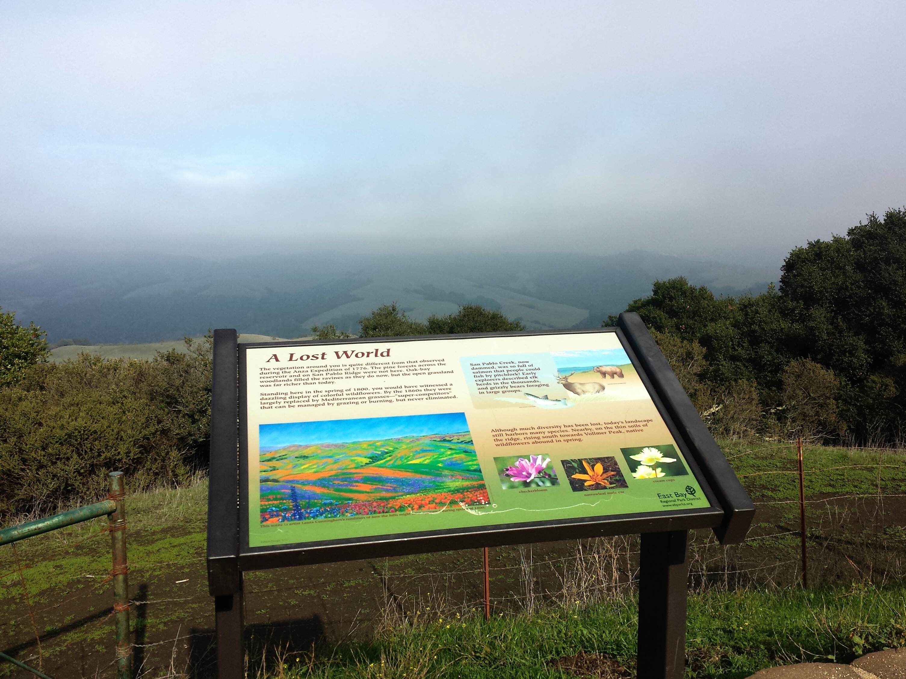 This is one of the information panels at Inspiration point where the parking lot and staging area is, it overlooks the lush San Pablo Reservoir and illustrates all the wildflowers that used to grow there, and tells a bit of the history. There is also a trail thru the reservoir but you need a permit to hike it from East Bay Mud, and no dogs are allowed.
