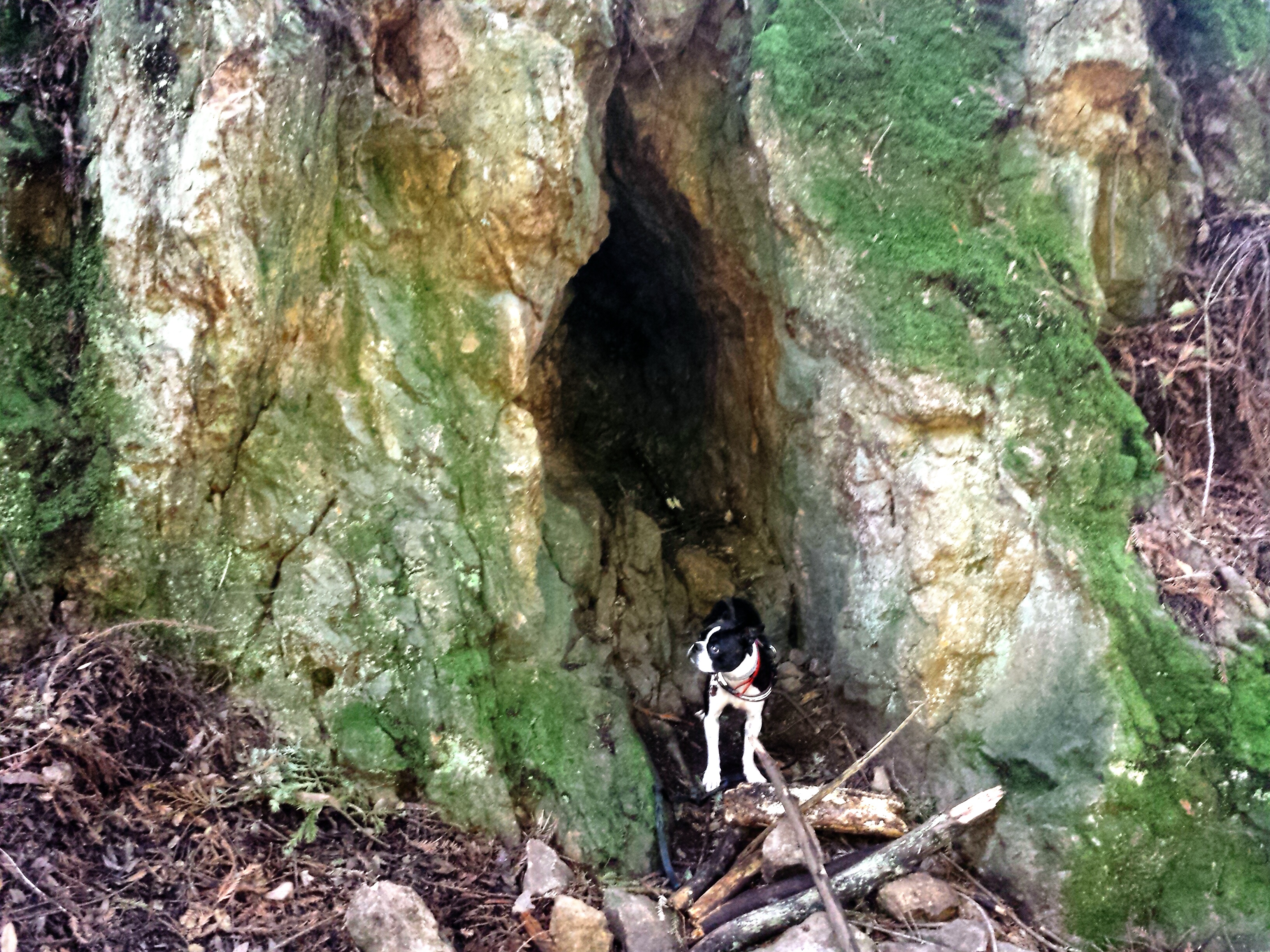 I love this trail, and spend a lot of time on it and around it during the summer when it is hot, it is larger than the portion of it on this loop and I hope to write about it soon. Portions of it are a bit more fun with tree roots to climb over like steps, but it is mostly easy. There is also a big tree cave right on the side of the trail that Chico loves to play in. And there are a couple open areas if you want to play fetch.