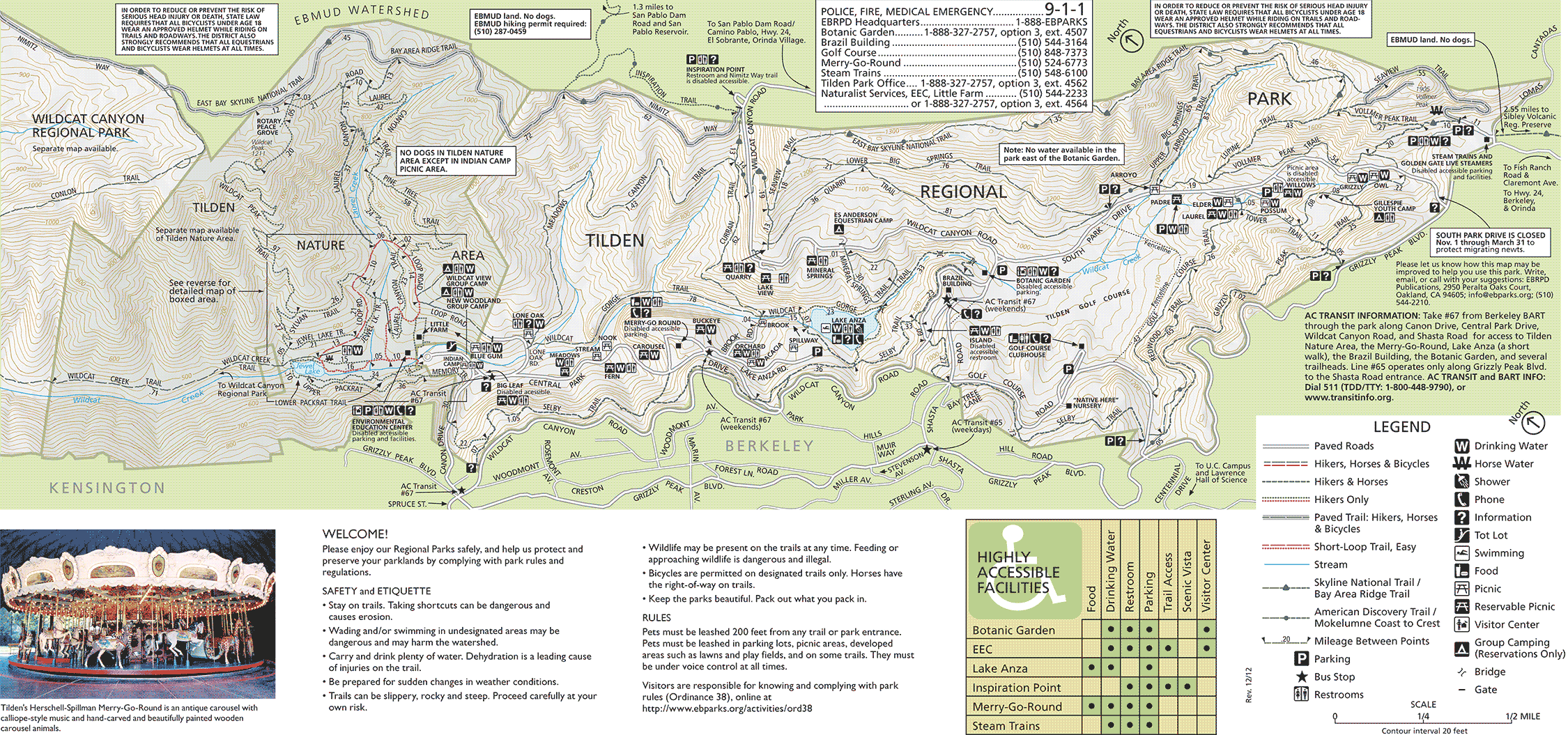 Once you reach Wildcat Gorge Trail, there is a visible drinking fountain, picnic area, and further into the parking lot a couple Porta Johns. From here, instead of getting right back onto the loop, you can also choose to explore all the large picnic alcoves, or find some other trails such as The Selby Trail. The Tilden Nature Area is close to here, and has many trails, but doesn’t allow dogs.