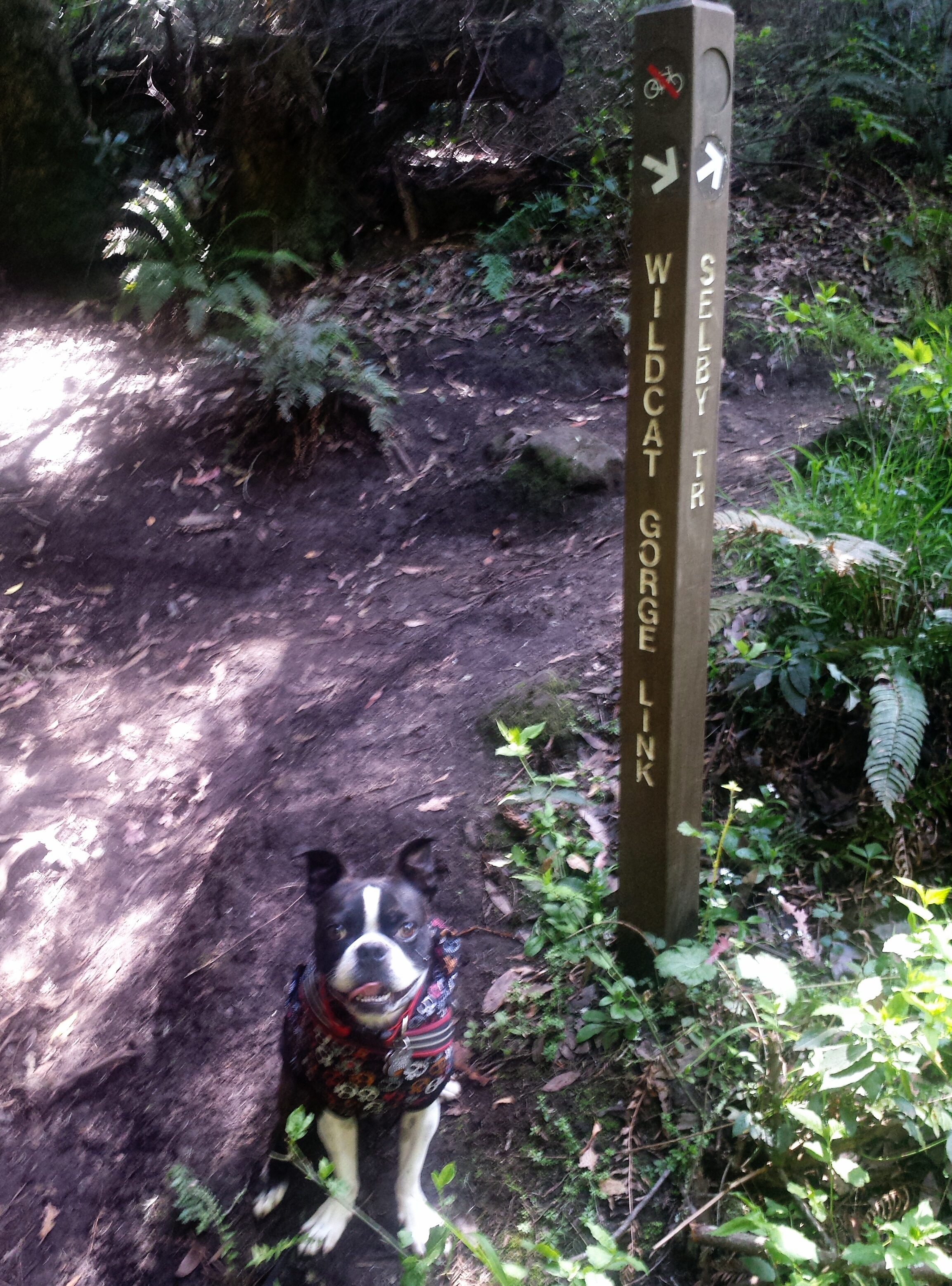 We followed all the Wildcat Gorge markers, and will take the Selby Trail Markers next time. The decent is easy, but the trail up can be full of tree roots, ruts, and rocky terrain. Really fun stuff for both of us!