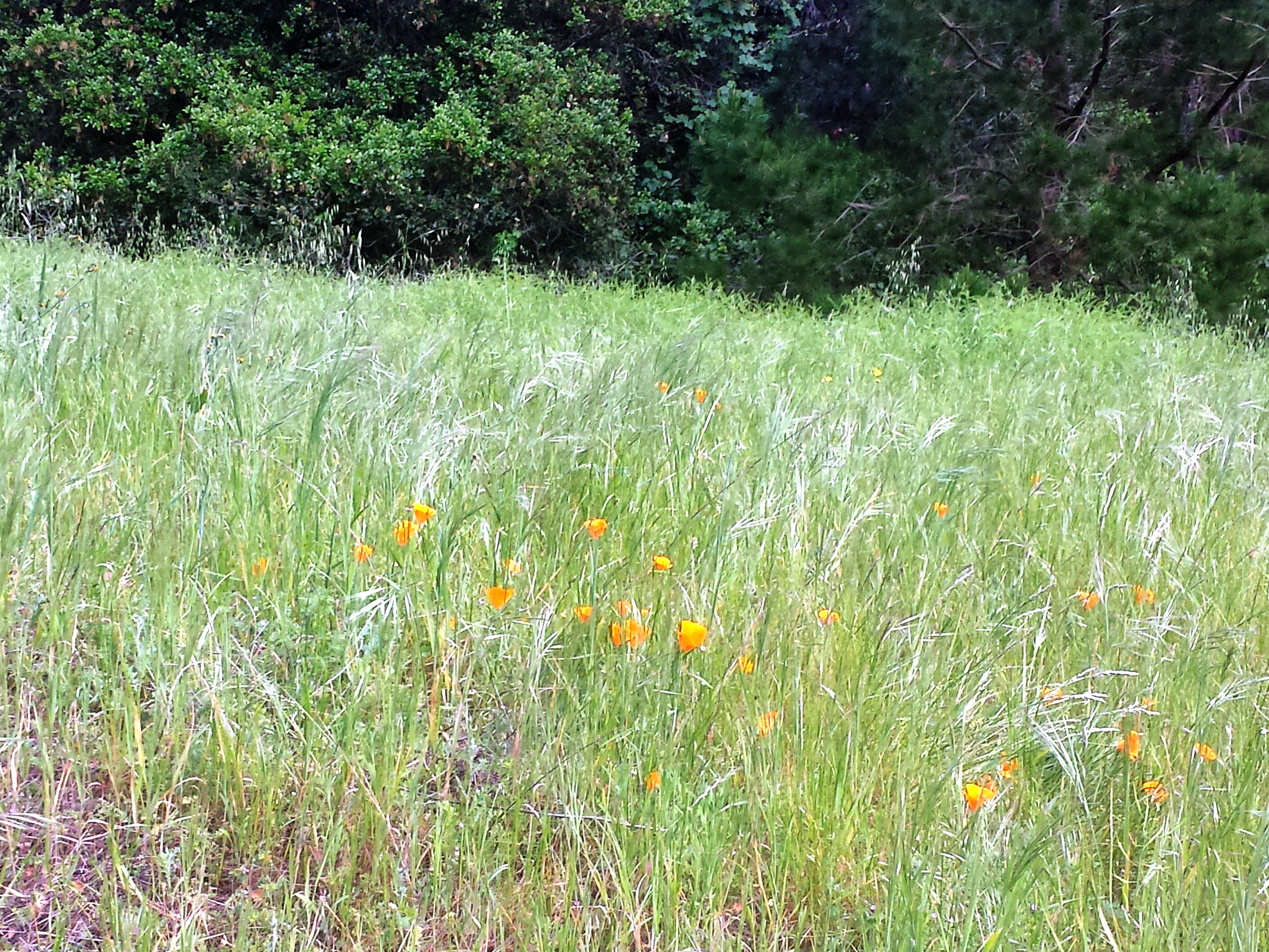 We decided to take the wide open trail, and 3/4 of a mile later when we got to the end of it, found out it’s name was Mineral Trail, if you want, this trail will loop back to itself where you originally got on it from Wildcat. From Mineral Trail you’ll catch many glimpses of Lake Anza, and small paths going down to it. Also some wild flowers in wide open green areas, and some cool old trees that looked magical and like they belonged in Mirkwood Forest from The Hobbit and Lord of the Rings.