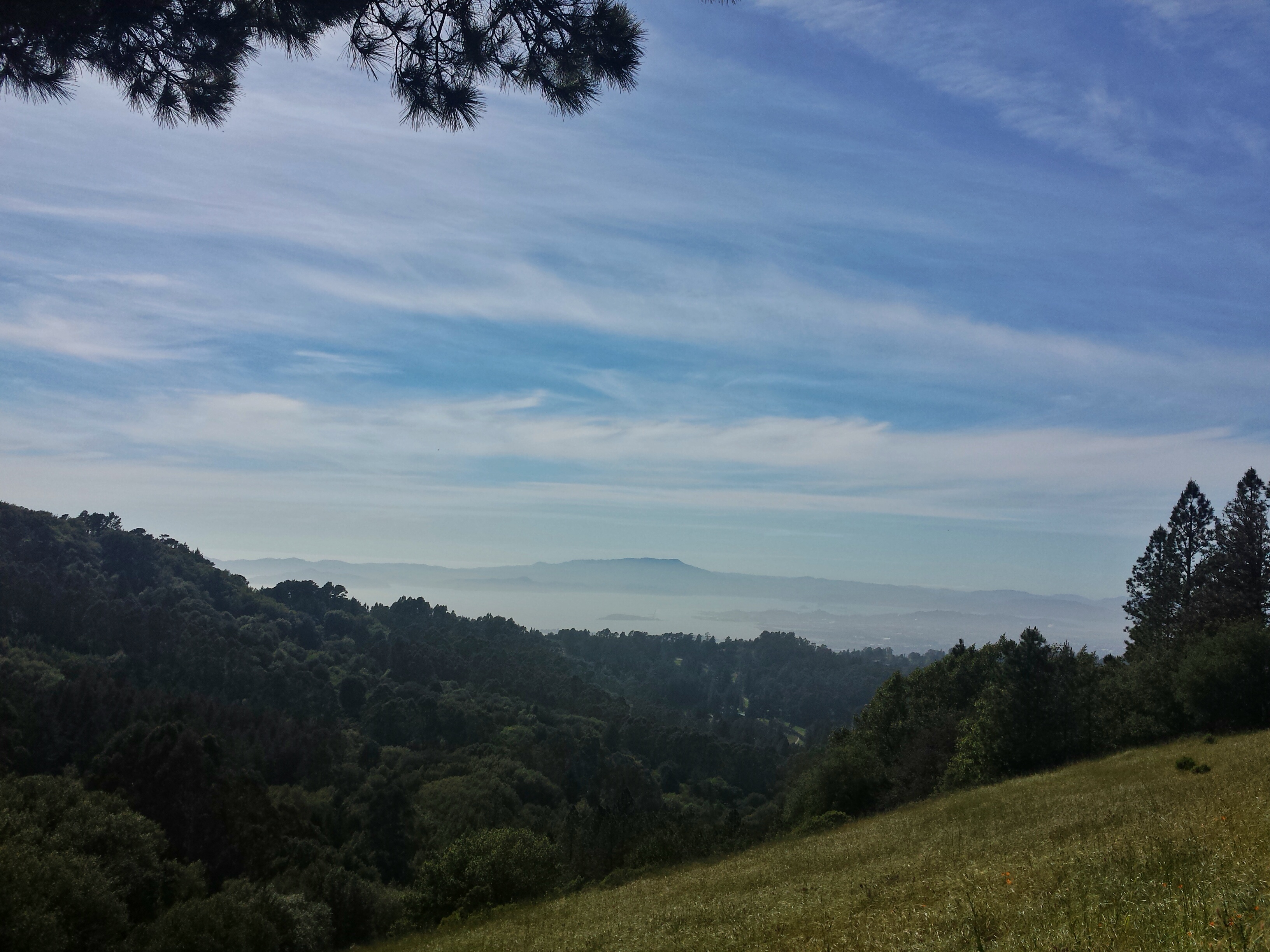 Coming further down you can sneak a peak thru the trees of the Bay again, and when you get to the water tanks, you are just about to the parking lot for a total of 2.5 miles. If you decide to skip either option for going to the top of Vollmer Peak, this loop is just about 2 miles. Also there is a picnic area off across from the first parking lot. I haven’t found the swing that is supposed to be somewhere on Vollmer Peak, maybe it is gone now.