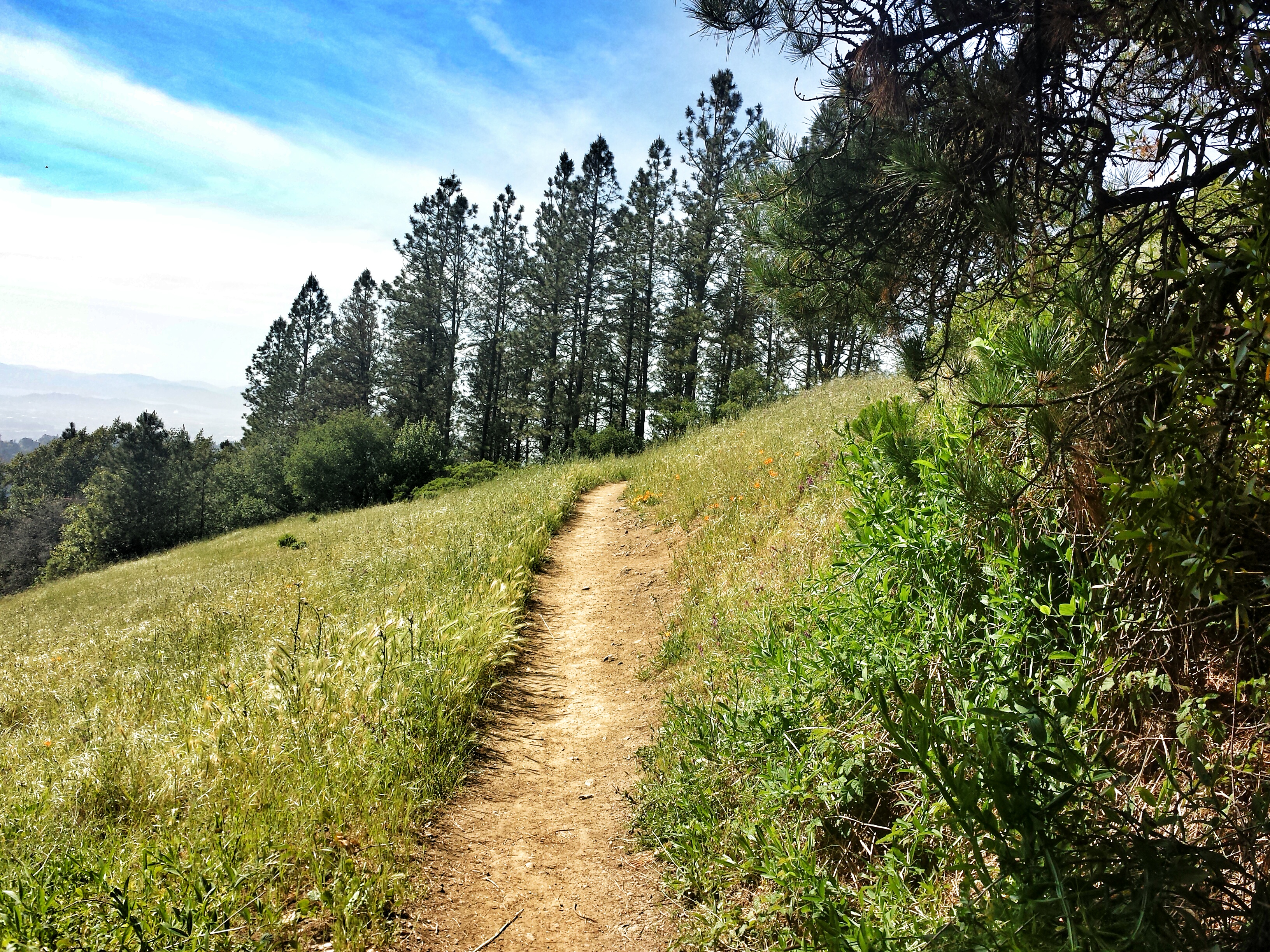 You’ll soon come to a sign that points to Vollmer Peak Trail in two directions, stick to the right. This trail will be equal parts sun and shade.