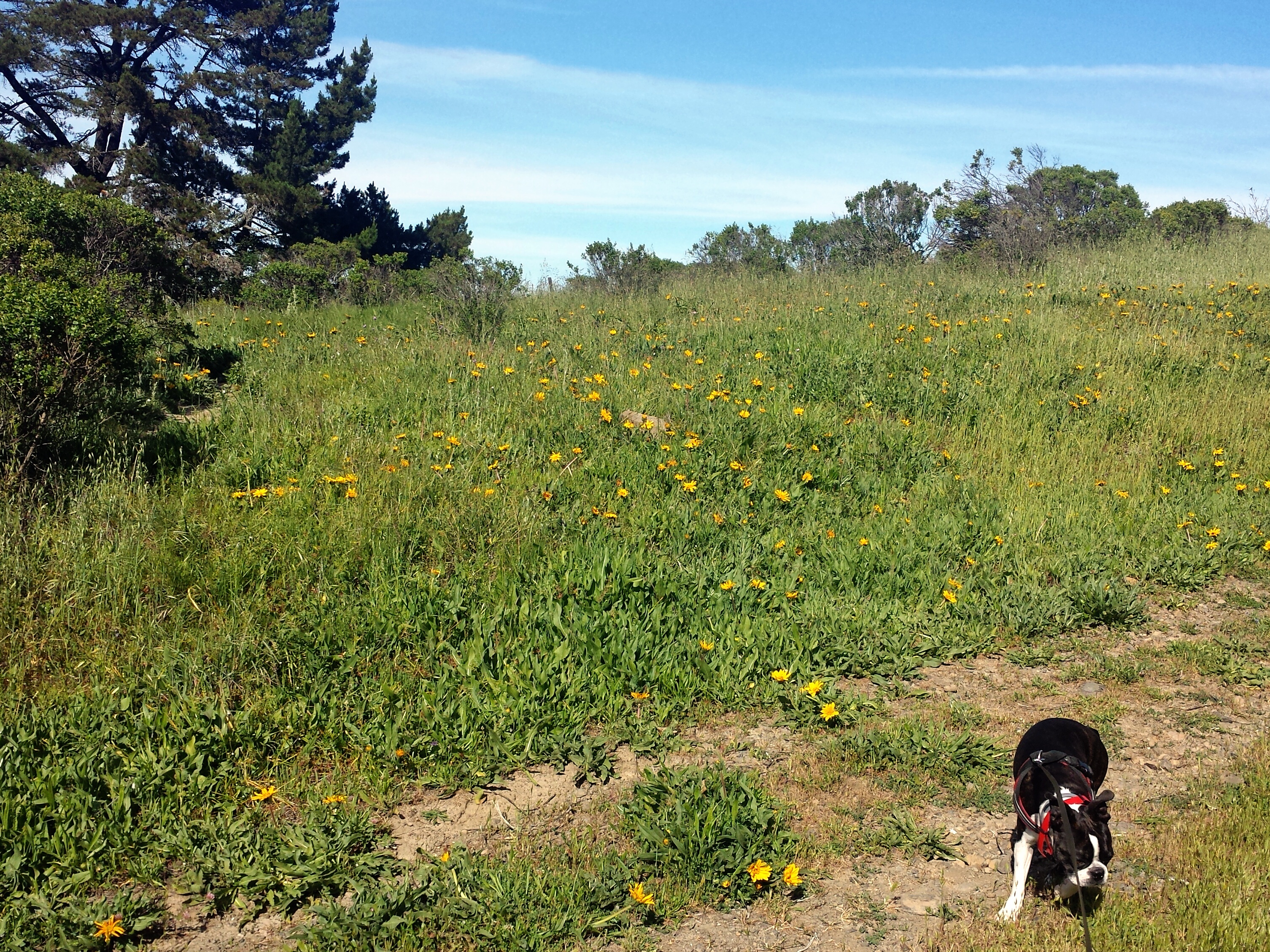 ***If you want to take a dog mobile/stroller friendly option to the top of Vollmer Peak, take the paved trail instead which is Seaview Trail..heads up, it can be quite steep in places, you’ll still see many amazing views. and my full loop covers these portions. Depending on how much walking around you do at the top, it’s a bit under 2 miles. There is a portajohn near the top as well.