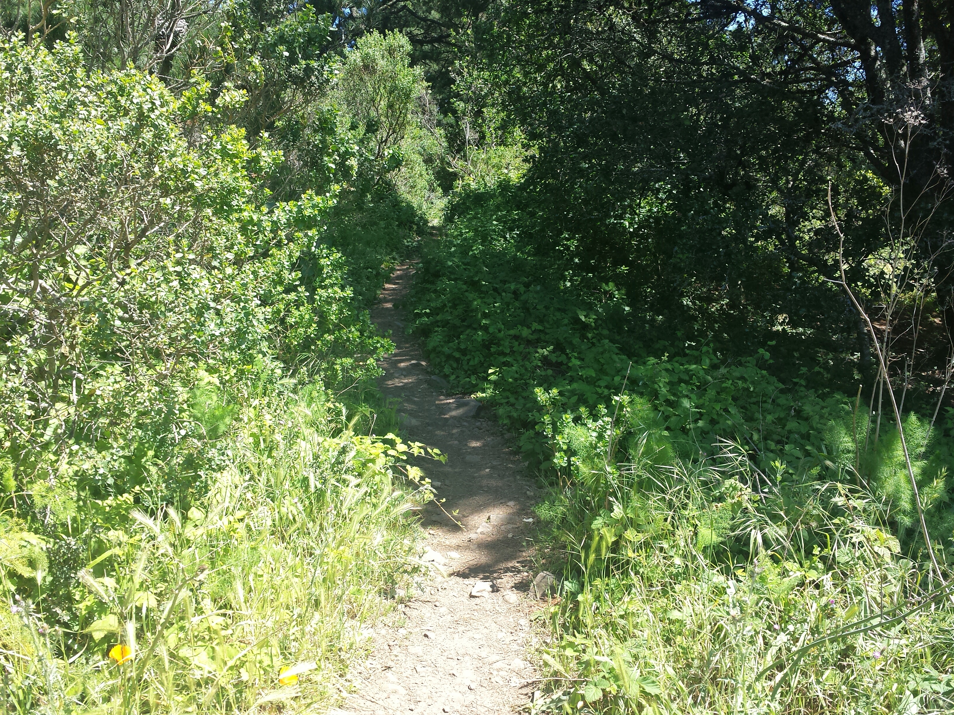 The path will eventually run into a wide open fire road, you can’t miss it, there will also be an Arroyo Trail sign taken over by nature on the left, turn right on the fire road, which is Seaview Trail, or will become Seaview Trail, and also part of The Bay Area Ridge Trail. Sections of Vollmer Peak Trail and Seaview Trail are also part of the 1,200-mile Anza Trail that brought Spanish settlers to San Francisco from Arizona.