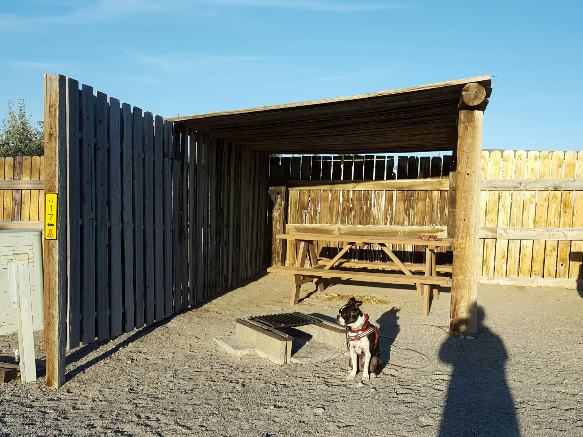 It’s just a stop over KOA, but the people were nice, the bathrooms were clean, and the showers had a full lockable door, which makes it easy to bring your dog in. The site, though dusty, had a picnic table on one side of the parking spot, and a pretty big tenting area.