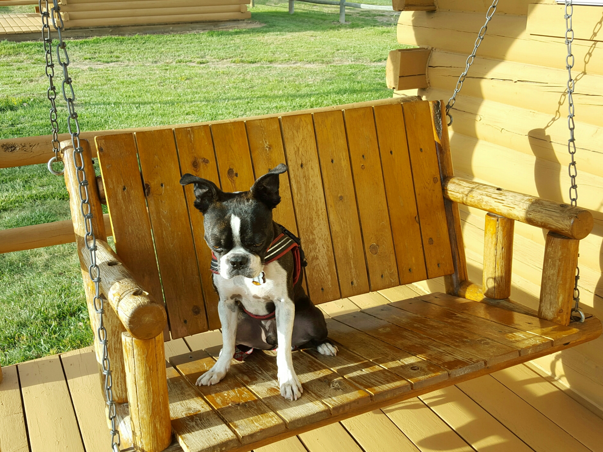 We got a Kamping Kabin at the Laramie KOA. It was cute! It was still daylight when we got there, and I took him to the doggy play area, and it had some agility equipment ! The Kabin locked so I left Chico in there and took a shower. These showers had 3/4 doors that locked. The staff was really cool and nice and let me bring him in the store:)