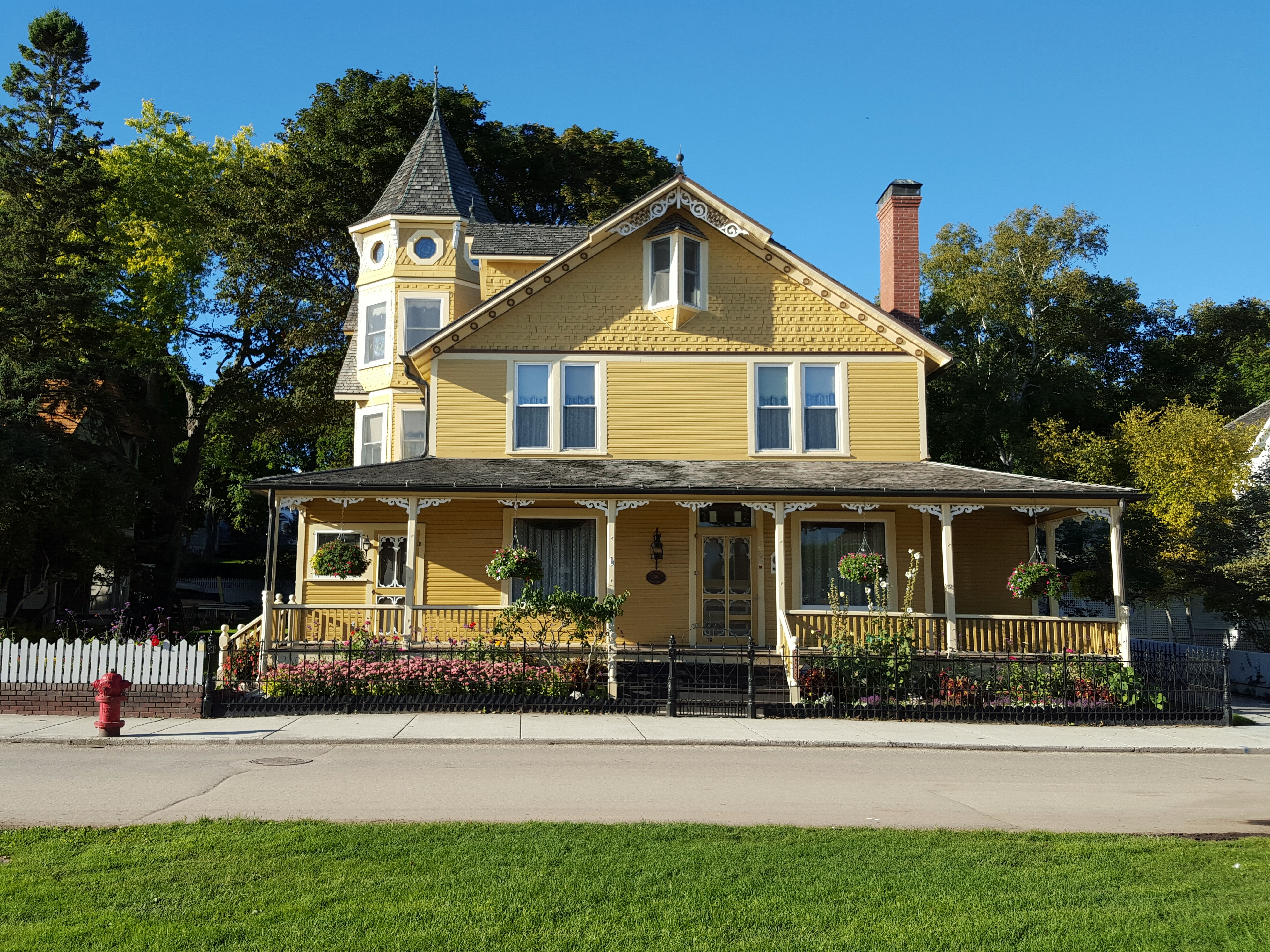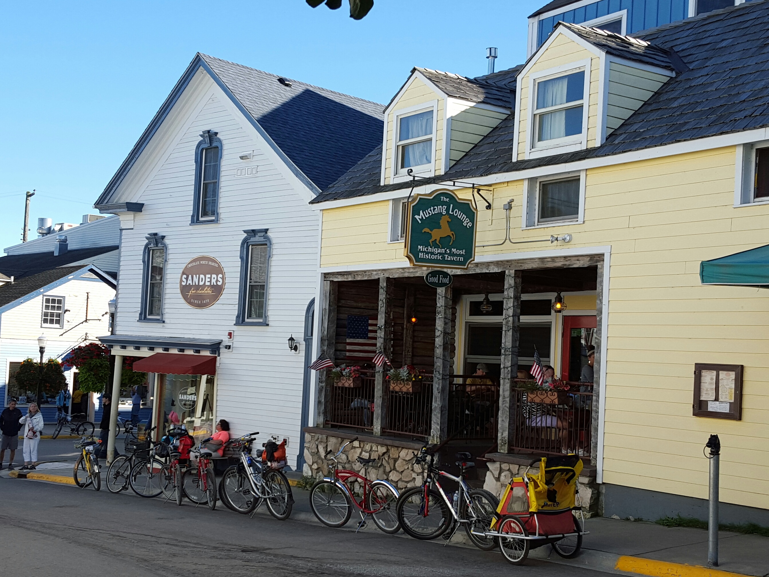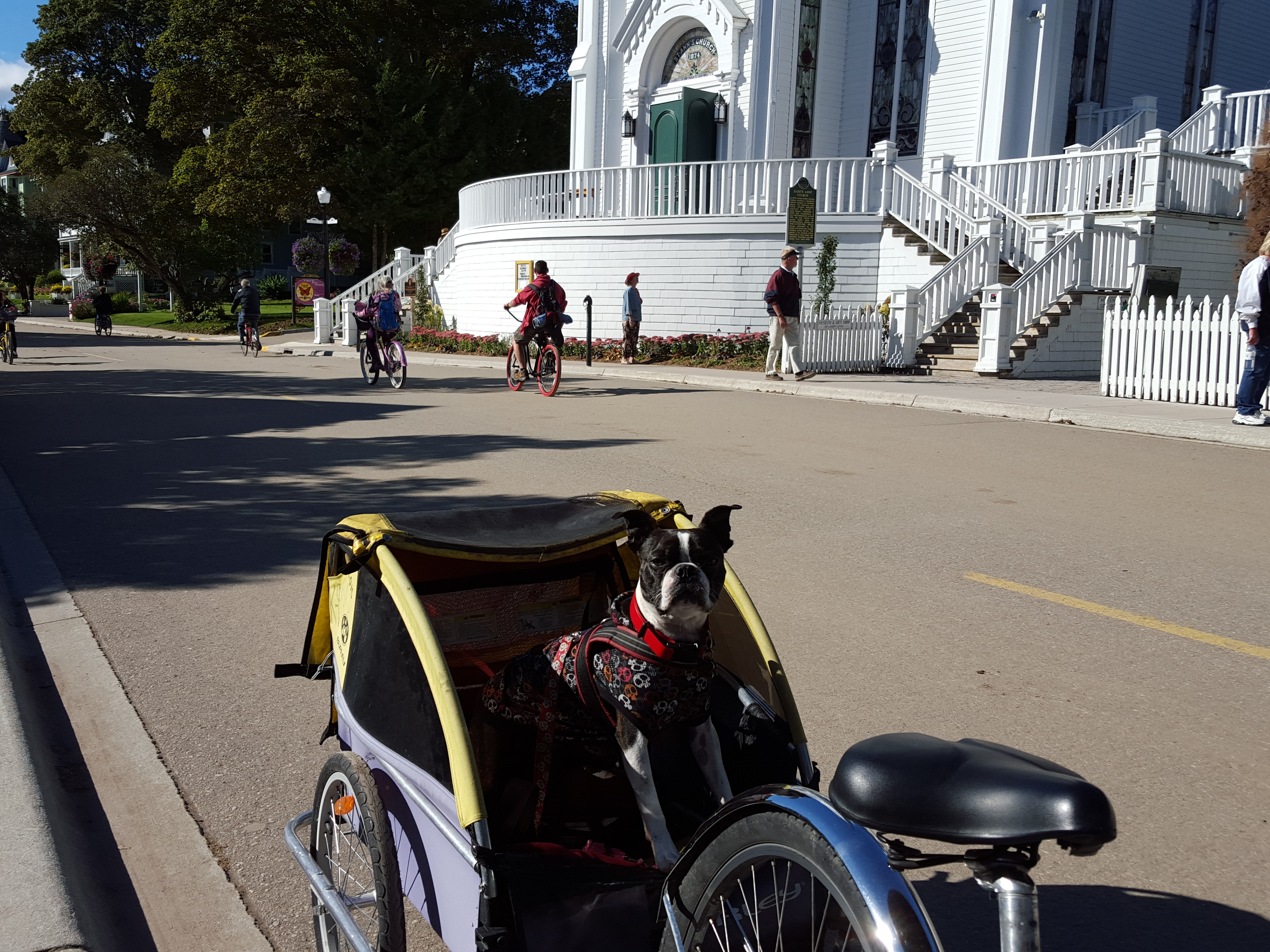 Dogs are allowed on the patios and porches of several places on Mackinac Island, and in some stores too! We even ran into one couple with three Boston Terriers! There were dogs of all sizes, and everyone was so well behaved! From what I’ve read, many hotels on the island allow dogs.