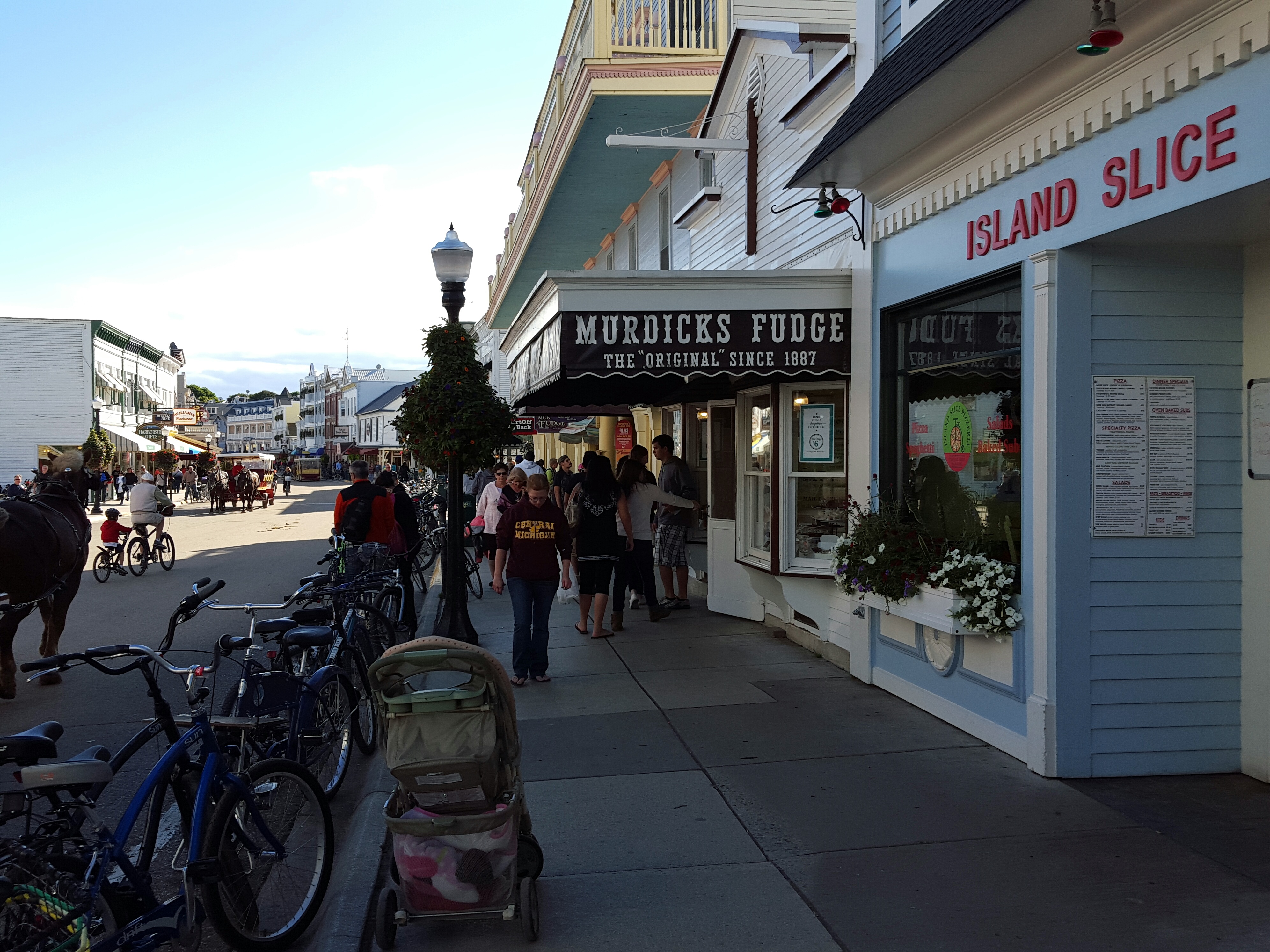 Oh, if you didn’t know, The entire Island is listed as a National Historic Landmark, autos are not allowed on Mackinac Island, transportation modes are walking, biking, and horses. The Island has a very interesting history, originally settled by Native Americans, the first European exploration was in the 17th century, two battles of 1812 were fought here, and it was a huge trading post before becoming a tourist and summer destination in the 19th century. The Grand Hotel is probably it’s most famous building, I didn’t get a photo of it, but besides the many images of it online, you can see it in the movie, “Somewhere in Time.” I only took a couple photos of all the gorgeous houses and hotels, I know, lame. Fudge is Mackinac Island’s most famous commodity, yum!