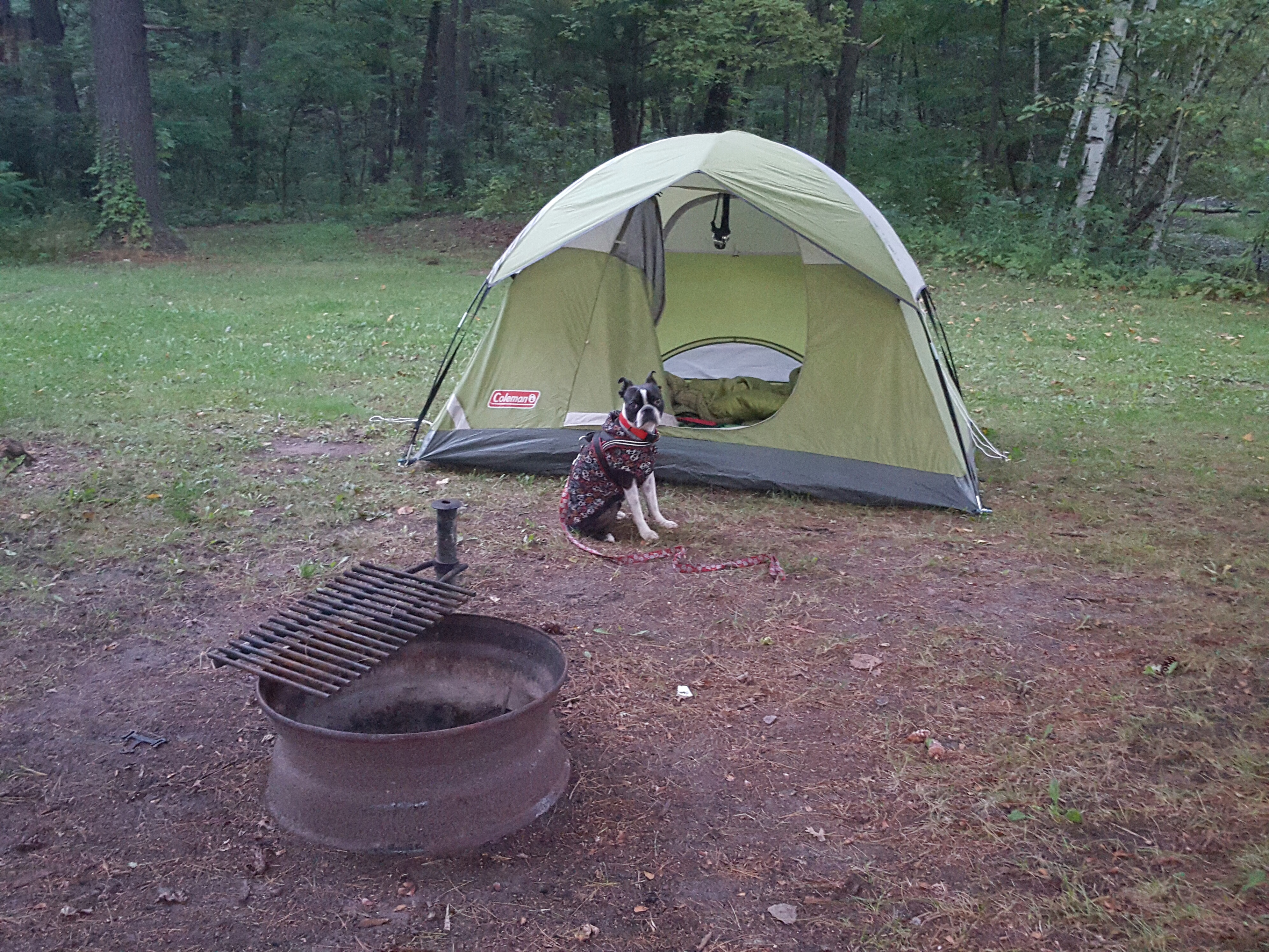 Our next stop was just a quick night in Wisconsin, google maps took us down all incredibly beautiful back roads In Northern Wisconsin to get to a KOA near the 90, which was right next to the freeway and the loudest KOA I have stayed at, but the actual campground was really nice. Chico did the oddest thing here, well only odd cuz he is about the farthest from his wolf roots as can be, yet at night when I brought him in the tent, he insisted on going back outside even though he had done his business. We were on leash, but he led me in a circle around the tent, and he marked it every 5 feet or so, and then he relaxed when we got back in the tent, and promptly went to sleep. There are some coyotes in this area, so maybe that is who he was trying to warn away lol.