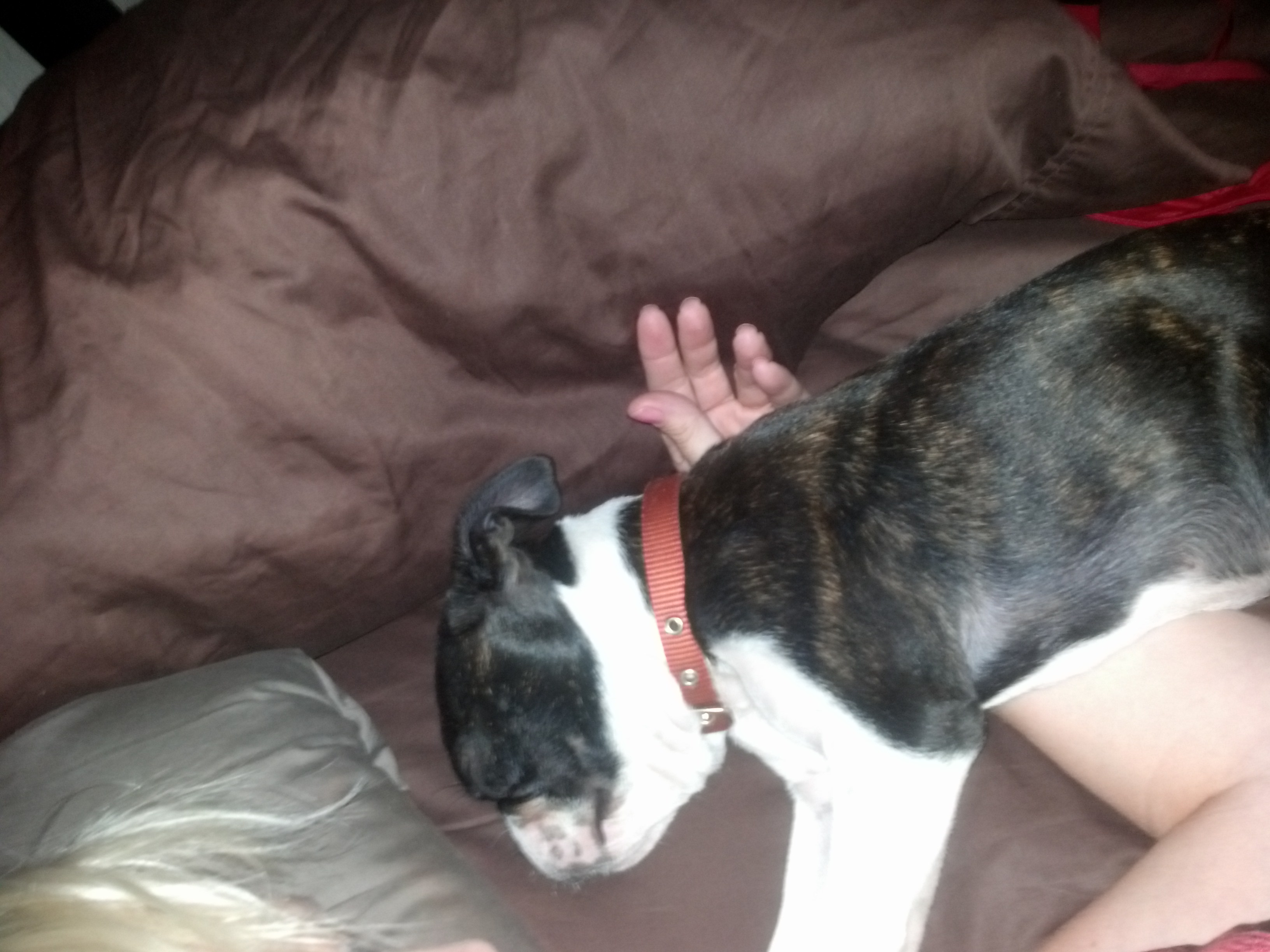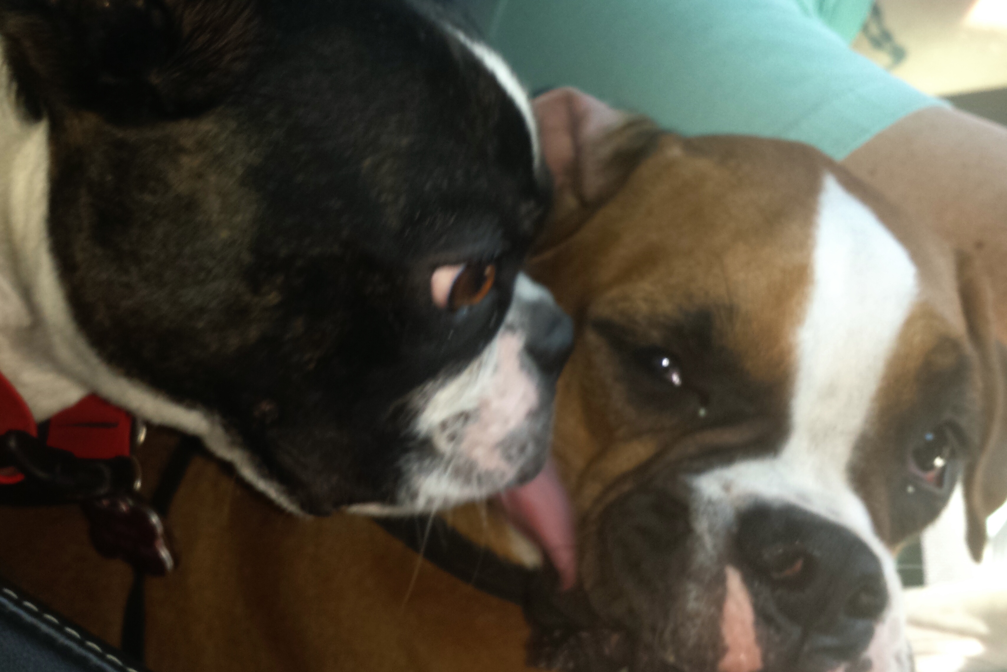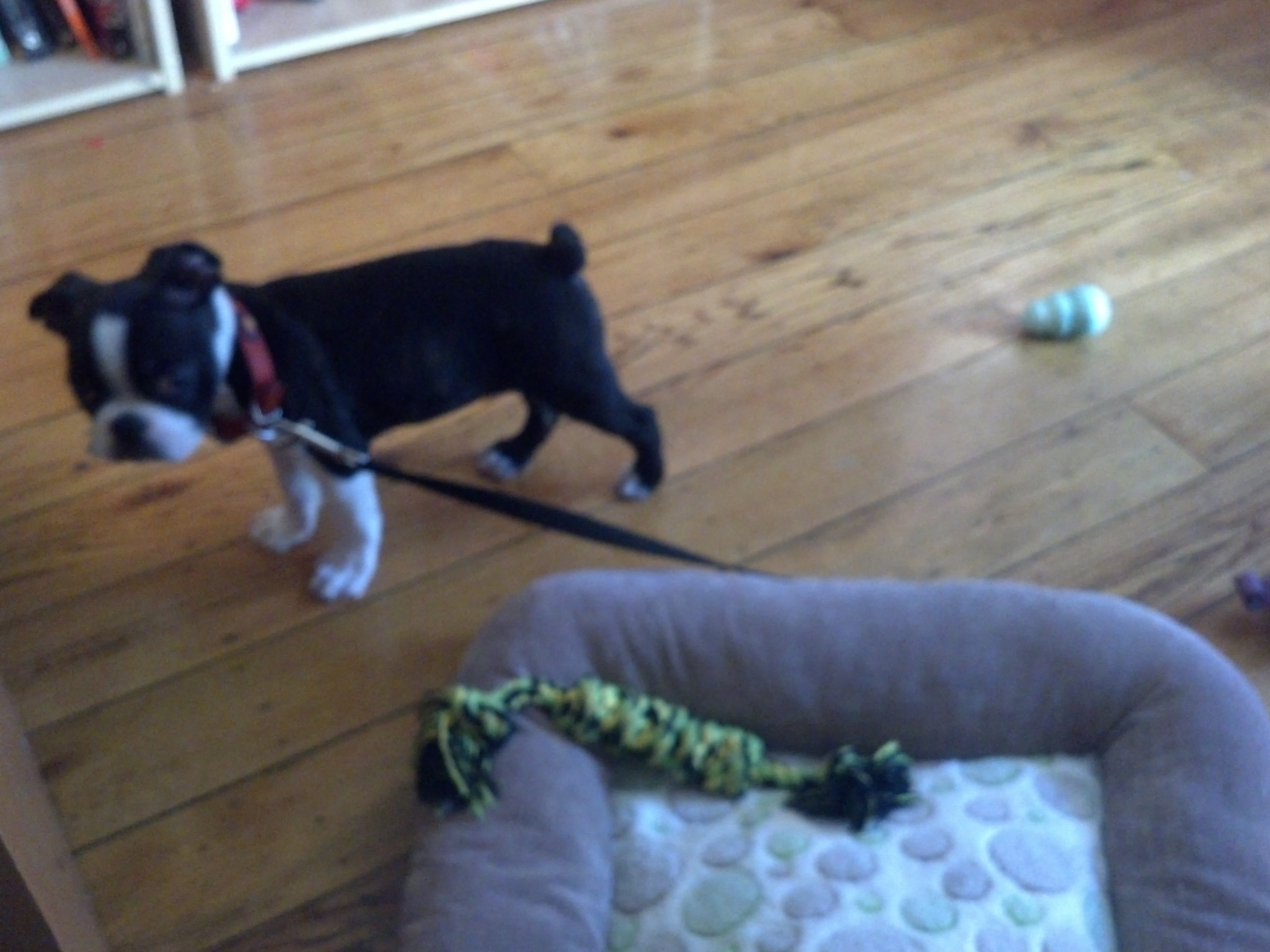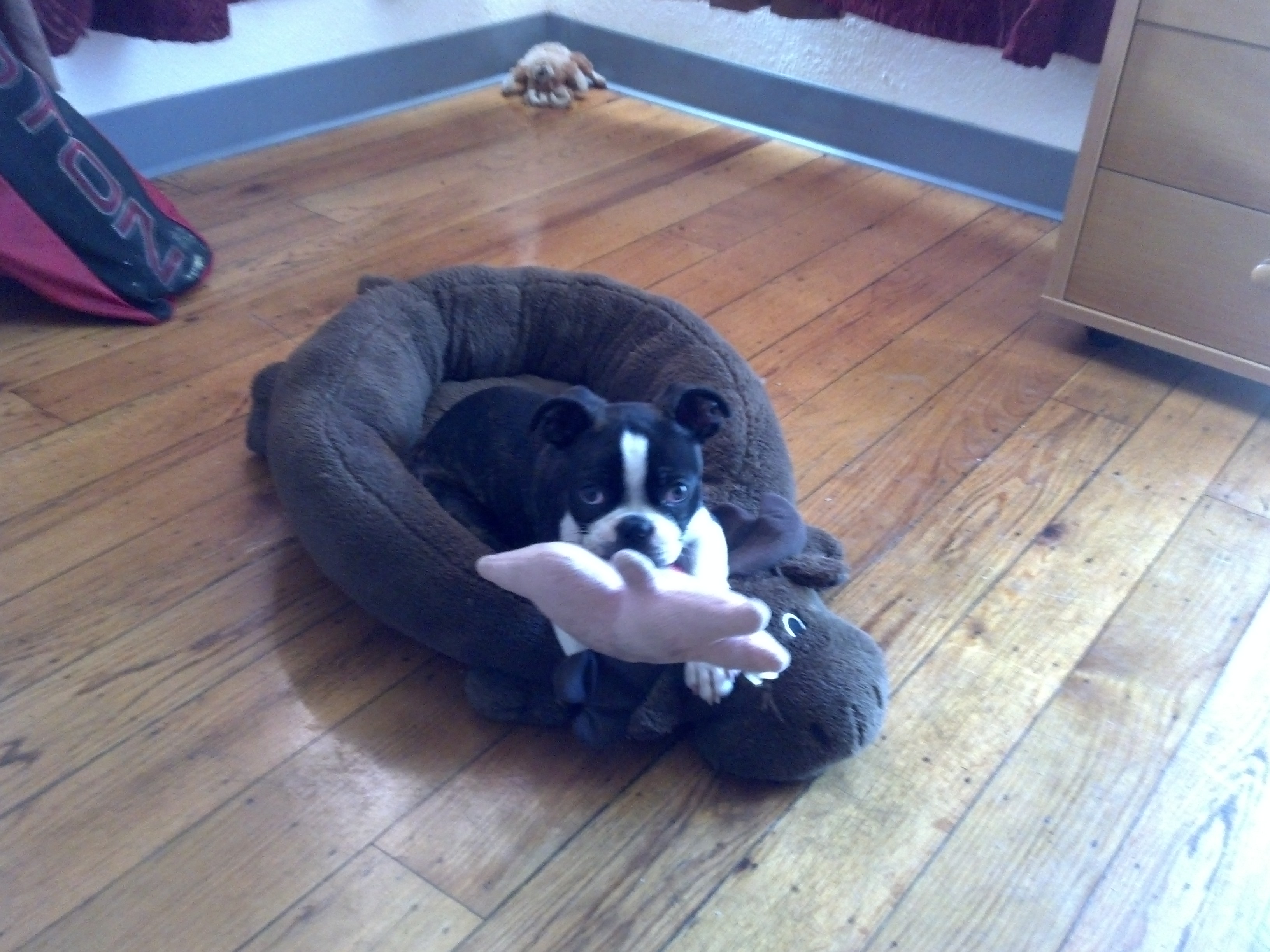 Chico loves all people and all dogs. He isn’t aggressive at all, and many people compliment his temperament. He never barks at home unless it is a new UPS person, and he sometimes barks when trying to get another dog to play. He is a little clown and knows several silly tricks, though he still has a problem with jumping on certain people, and down stay. Also even though I have year round allergies, I don’t seem to be allergic to Boston Terriers.